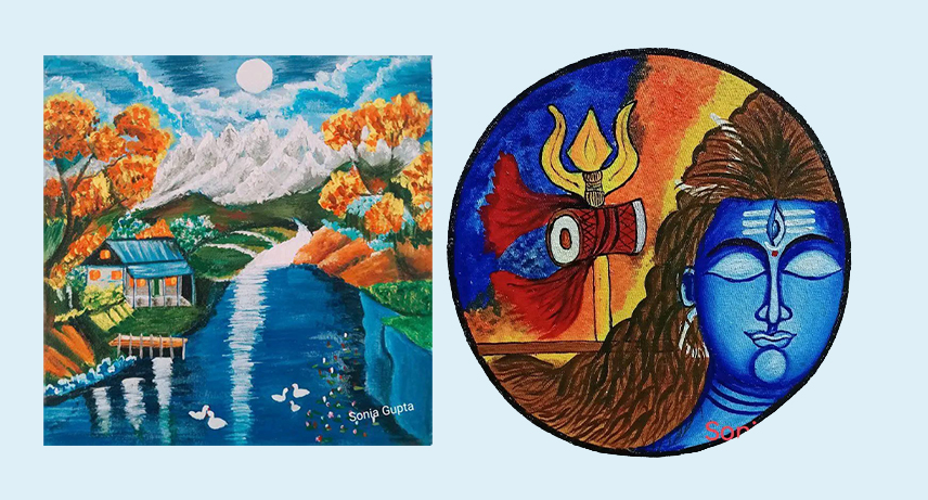 *We create lots of varieties of paintings just like … Madhubani, Warli, Gond, Kalamkari , Pichwai, Kerala Murals, Folk art, Abstract art, Still life, landscape painting, Texture painting , Mix Media painting, clay work , lippan artwork ..