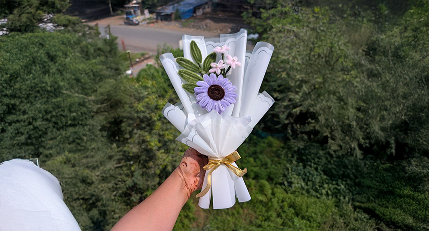We create keychains, Singal flower hampers and a variety of flower bouquet, small size of flower pots etc
