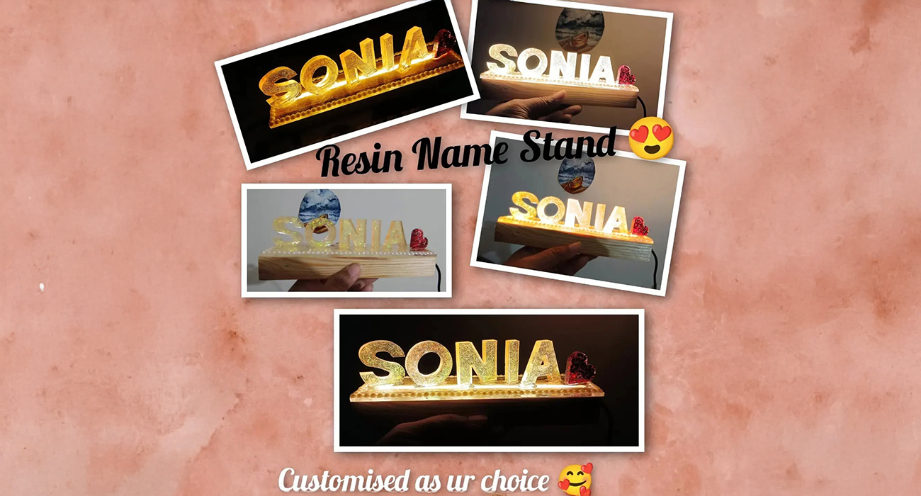 Name and photo frame with led light stand