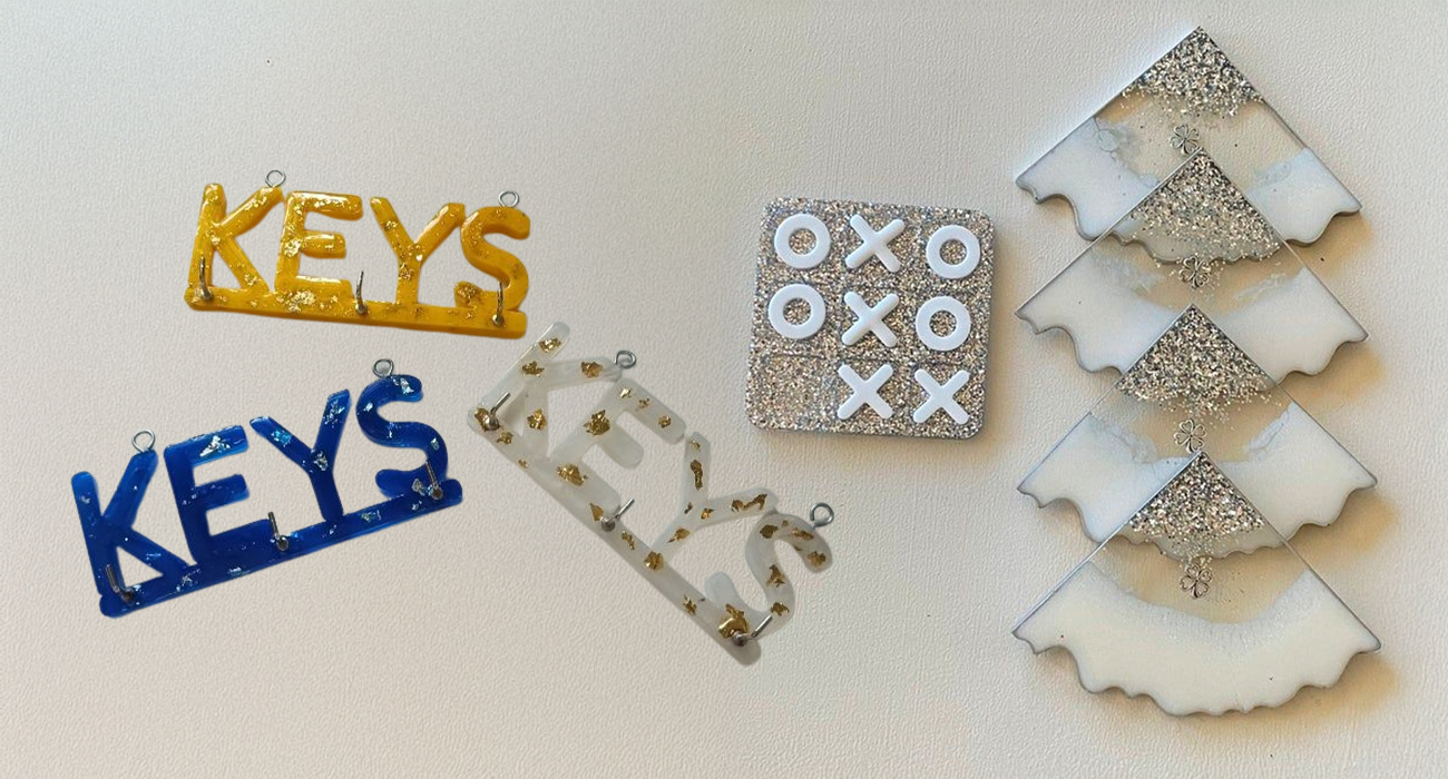Dive into our exclusive handcrafted resin collection: playful tic-tac-toe arenas for game nights, sleek mobile stands for scroll sessions, hefty paperweights anchoring ambitions, chic bag tags whispering style, nail polish coasters guarding glam, home stands spotlighting icons, pocket mirrors for on-the-go glow, tortoise-with-plate zen, name/photo keychains carrying kin, fridge magnets pinning dreams—and endless more. Perfect for posh home accents or premium gifting that delights.