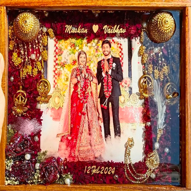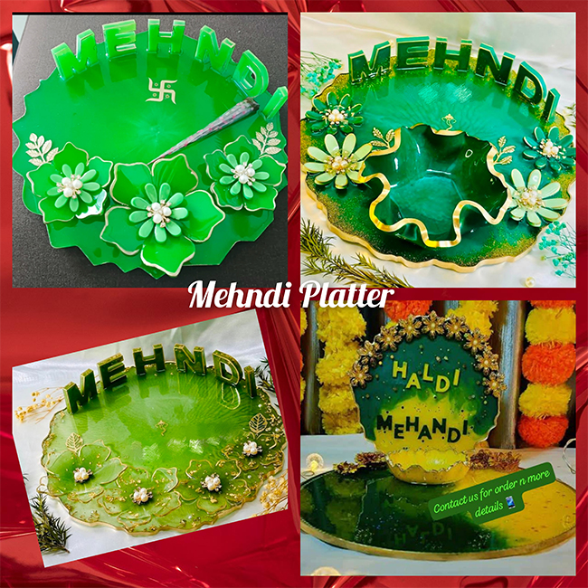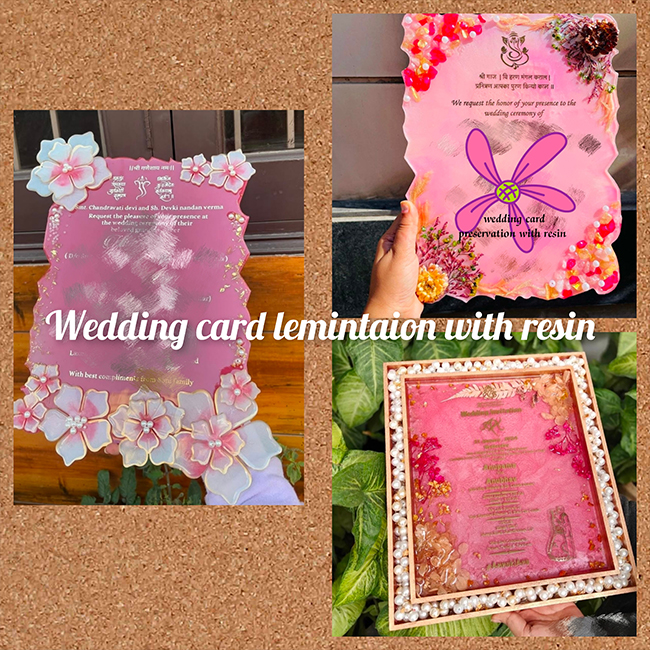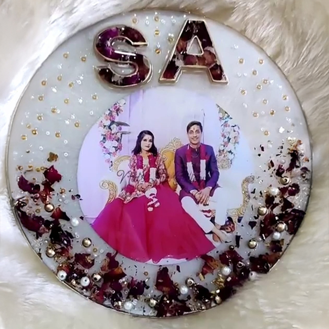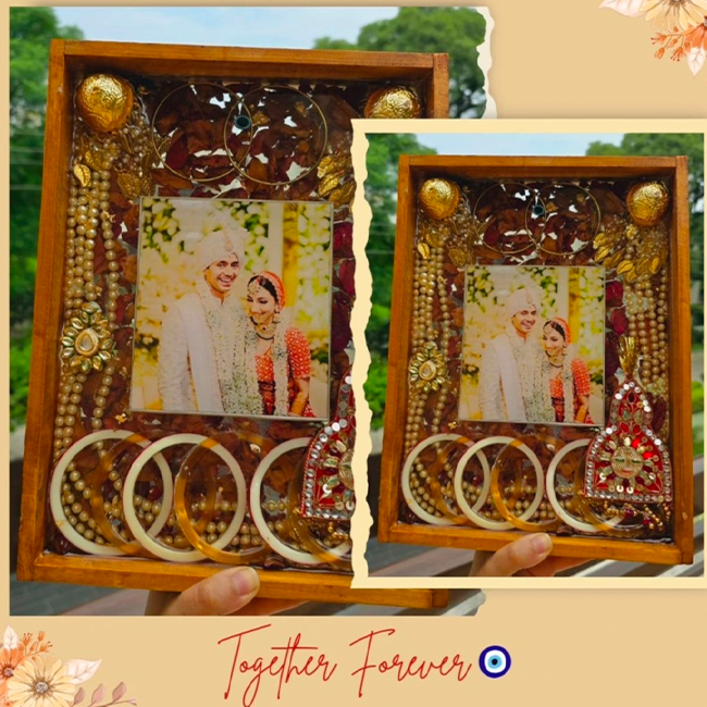 Wedding accessories save in resin for life time memories (wedding photo frames, wedding cards, mehndi thali, haldi platter, ring platter, vermala preservation)
